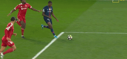 第86分钟,巴黎默契反击,登贝莱劲射击中立柱