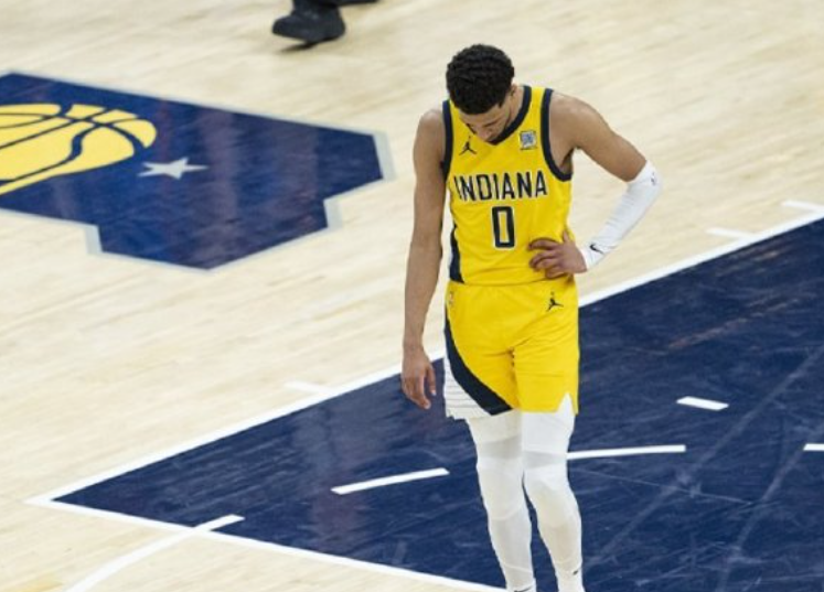 在总决赛G2期间,哈利伯顿就已经拉伤了自己的小腿,但当时不算严重,哈利伯顿带着护具和肌贴,还是可以坚持上场打比赛。但是在总决赛G5,哈利伯顿的一次持球突破中不慎再次拉伤了自己的小腿,他当时直接退出比赛,后来又在下半场强行登场。